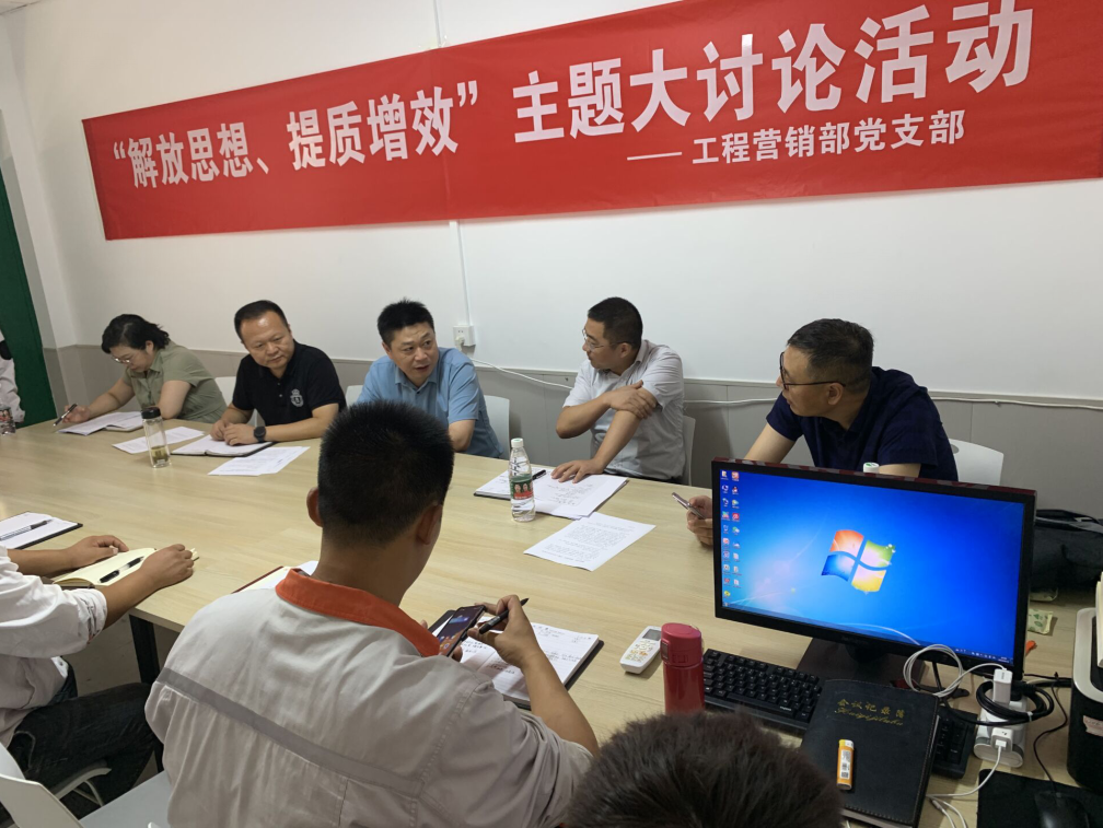 8月11日上午,工程營(yíng)銷部開(kāi)展“解放思想、提質(zhì)增效”主題大討論活動(dòng),公司黨委書(shū)記、總經(jīng)理宋晟曄,總經(jīng)理助理徐健,生產(chǎn)技術(shù)部部長(zhǎng)張雷海參加討論。會(huì)議由工程營(yíng)銷部副部長(zhǎng)賀通華主持。