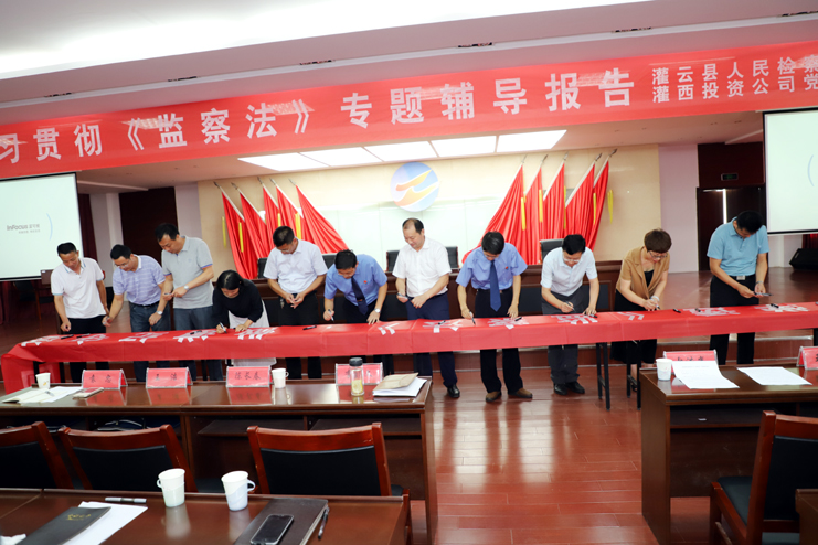 此次集中培訓(xùn)只是我公司深入學(xué)習(xí)貫徹監(jiān)察法的舉措之一,按照公司紀(jì)委統(tǒng)一部署,把監(jiān)察法納入公司干部必修課程及各類(lèi)黨員培訓(xùn)內(nèi)容,通過(guò)座談會(huì)、報(bào)告會(huì)等多種形式,深化學(xué)習(xí)培訓(xùn)效果,把學(xué)習(xí)培訓(xùn)延伸到基層一線。會(huì)后全體與會(huì)人員集體在“學(xué)深學(xué)透《監(jiān)察法》,做遵紀(jì)守法國(guó)企人”橫幅上簽字承諾。(張明建)