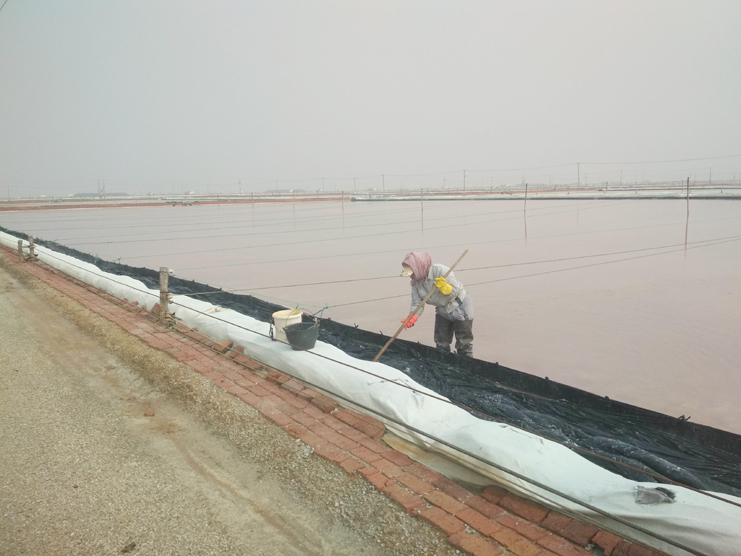 每一個女孩都喜歡美麗的衣服,都喜歡把自己裝扮得漂亮迷人??墒枪ぷ鞯奶厥庑圆辉试S鹽灘工“貌美如花”。周娟,37歲,新河制鹽分公司5班一名普通的女工,她關(guān)注班組集體事務(wù),能夠團結(jié)、關(guān)心班組女工,并積極帶領(lǐng)女職工昂揚向上,奮發(fā)有為,為單位鹽業(yè)生產(chǎn)多作貢獻。周娟特別注重對新上崗的員工培訓(xùn)教育工作,她總是不厭其煩講解原鹽操作流程及工作中的注意事項和安全隱患,毫不保留將自己多年的經(jīng)驗傳授給大家。炎熱的夏天,當大家坐在辦公室,吹著空調(diào)、喝著冰水時,她和她的同事依舊在鹽灘忙碌著,嬌嫩的皮膚被曬得黝黑。盡管如此,她依然每天駕駛著活茬機,一遍又一遍地游走在鹽田,將汗水撒在工投。