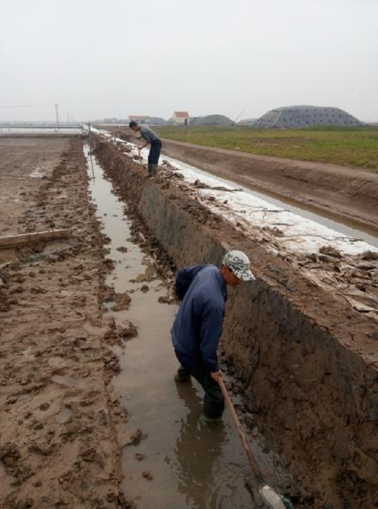 根據(jù)公司生產(chǎn)部門(mén)統(tǒng)一要求,在每個(gè)生產(chǎn)班組新灌一塊結(jié)晶池,埒南制鹽分公司精心布署,細(xì)化安排,嚴(yán)控時(shí)間節(jié)點(diǎn),抓頭、抓早、抓緊,對(duì)生產(chǎn)班組新上的格塊堅(jiān)持做到現(xiàn)場(chǎng)指導(dǎo),跟蹤督察,不符合灌池質(zhì)量標(biāo)準(zhǔn)的堅(jiān)決不準(zhǔn)上馬。(圖為職工在修整結(jié)晶池堰)莊忠明