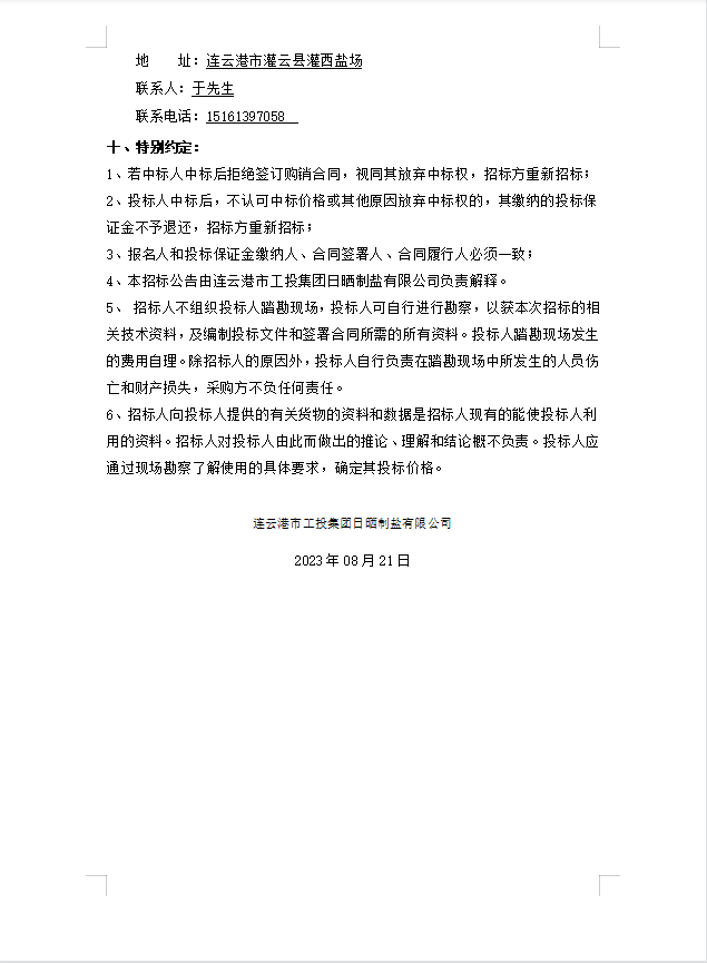 日曬制鹽有限公司螺絲等物資招標公告