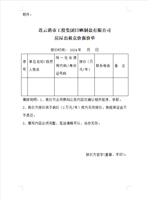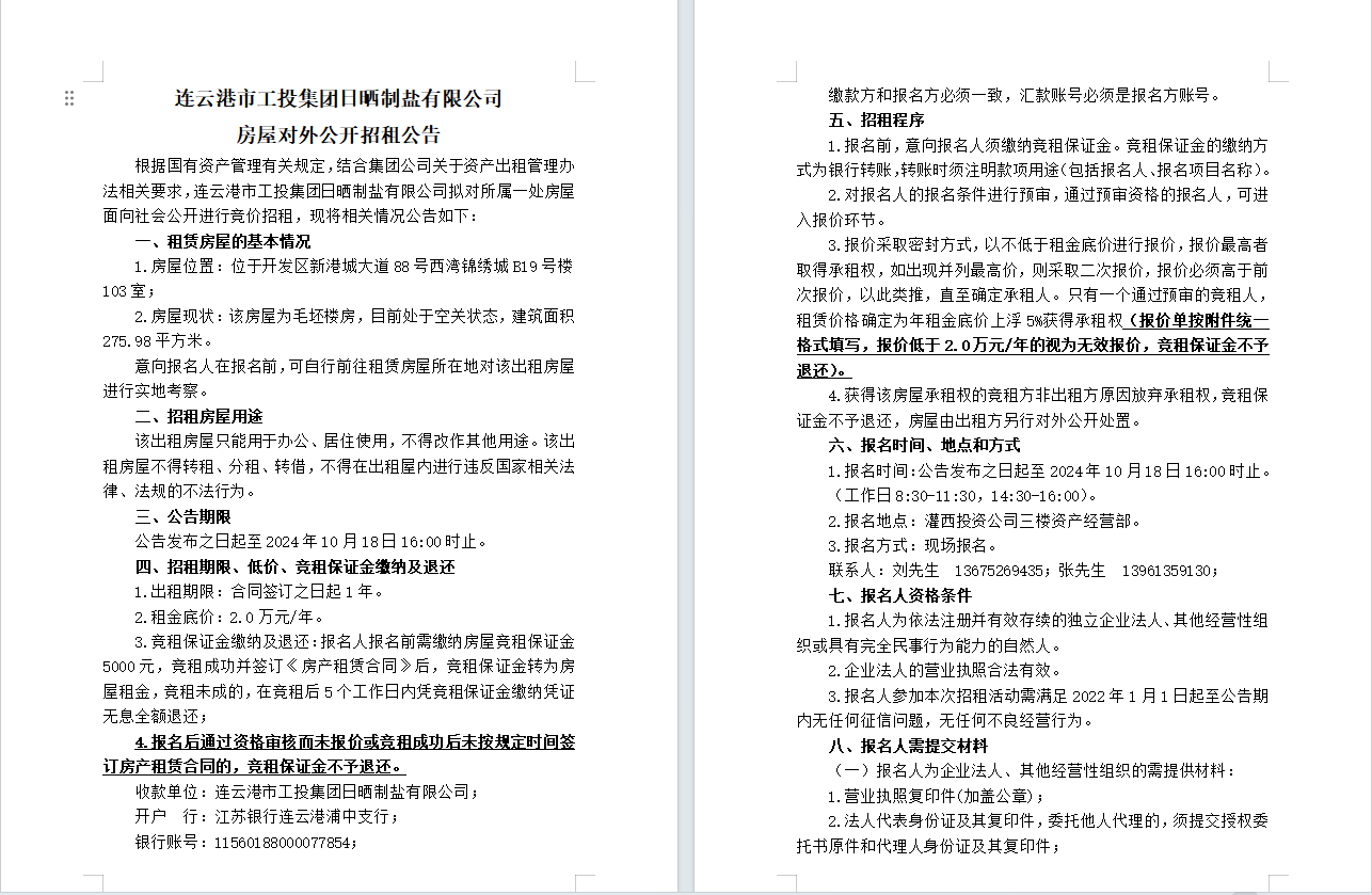 連云港市工投集團(tuán)日曬制鹽有限公司 房屋對外公開招租公告