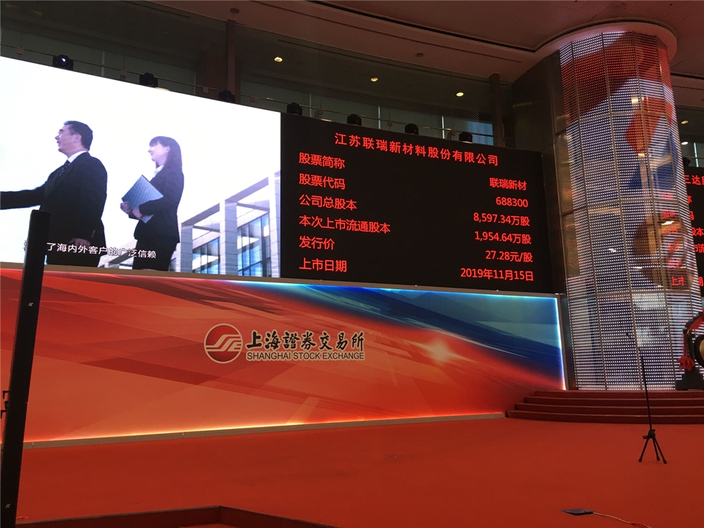 | 11月15日上午9時30分,工投集團產(chǎn)業(yè)基金投資企業(yè)——江蘇聯(lián)瑞新材料股份有限公司(以下簡稱“聯(lián)瑞新材料”)首次公開發(fā)行A股上市儀式于上海證券交易所舉行。集團公司黨委書記、董事長楊龍,資產(chǎn)管理公司有關人員受邀出席儀式。