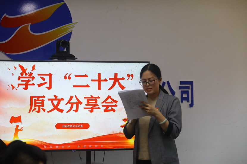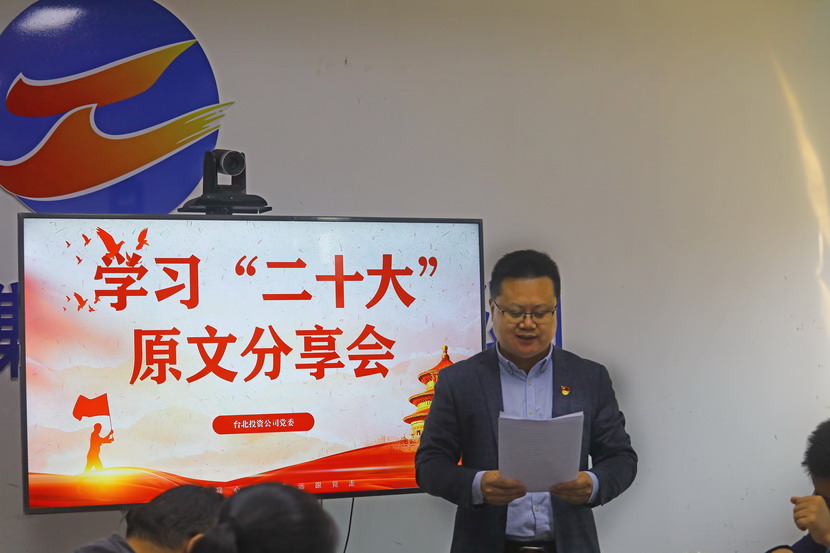 10月21日,臺北投資公司黨委組織召開黨的二十大報告學(xué)習(xí)交流會,每位同志閱讀報告原文,針對報告內(nèi)容結(jié)合工作實際,分享心得體會、暢談工作思路、謀劃未來發(fā)展。