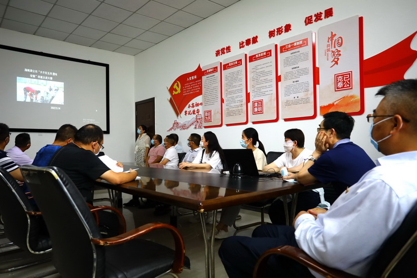與會人員邊看邊聽講解海州灣黨支部規(guī)范化展板和本月書記項目的落實情況,以及在海州灣黨建活動室觀摩學(xué)習(xí)了上半年黨建基礎(chǔ)臺賬和活動影像。各黨支部就基層黨組織規(guī)范化及書記項目“點將臺”的落實情況作了匯報交流。黨委副書記楊善革針對各支部的黨建工作情況作了詳細(xì)的點評,指出各支部黨建工作中存在的不足,并要求各支部立即整改。