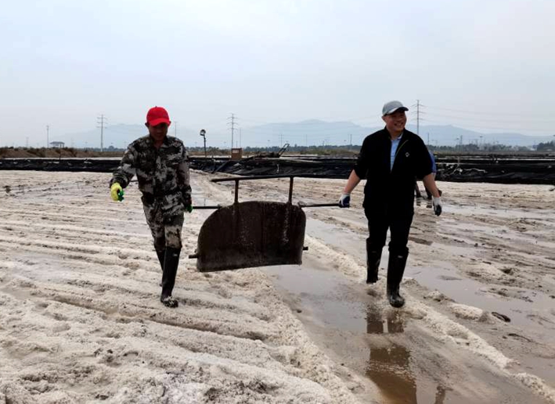 厲兵秣馬,鏖戰(zhàn)秋扒鹽。“同志們,這將是我們臺北地區(qū)1300年鹽業(yè)史上最后,也是時間最緊急、任務最繁重的一次秋扒鹽了”正是因為使命在肩,我們更要勇往直前。公司全體黨員干部爭分奪秒扒鹽、竭盡全力制鹵,奮戰(zhàn)100天,全力沖刺“開新局、奪首勝”目標任務。連云港堿廠關停在即,鹽鈣聯(lián)產(chǎn)項目終結(jié),原鹽搶收進入到了大決戰(zhàn)時刻。為此,公司上下,從黨委班子到普通辦事員,從直屬單位到公司機關,全部動員起來,9月28日召開了戰(zhàn)前動員大會并進行秋扒崗前培訓。10月2日,天時地利人和,夜里9時10分,隨著機器一聲轟鳴,扒鹽機組輸鹽大架銀瀑飛濺,大八組、西灘雙向聯(lián)動,人工扒鹽、機械扒鹽齊頭并進。公司領導與廣大職工想在一起、干在一起,上下齊心、爭分奪秒,擼起袖子、甩開膀子,在鹽池間盡情地揮灑著汗水,確保勞動成果顆粒歸倉,誓奪原鹽收官戰(zhàn)全勝。截止6日晚,公司 排放鈣液6000方,扒鹽3000余噸。