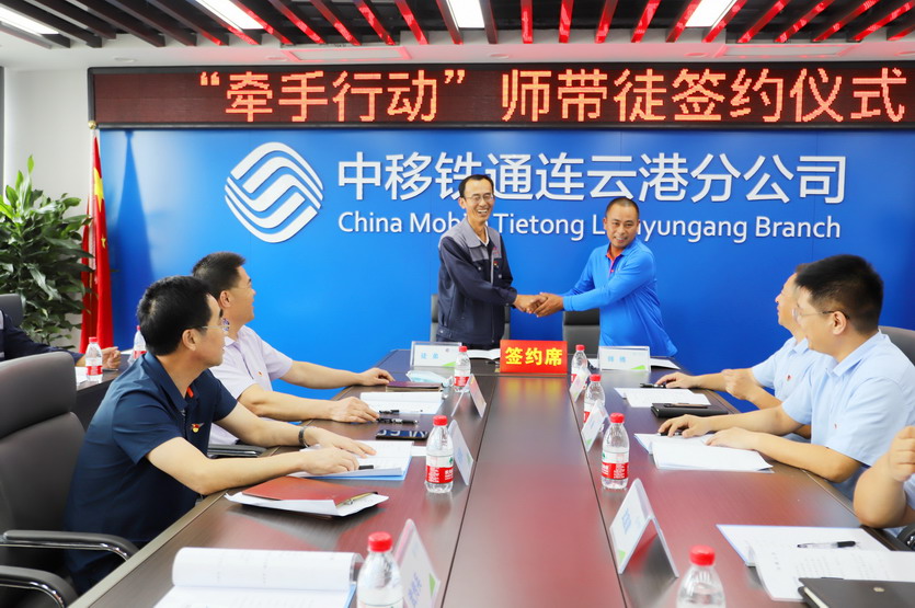 ? ? ? ? “黨建和創(chuàng)”是臺北投資公司、中移鐵通連云港分公司基于產業(yè)轉型戰(zhàn)略合作的黨建保障工程。“牽手行動”師徒結對是公司按照建設知識型、技能型、創(chuàng)新型勞動者大軍這一目標任務,切實加強新時代產業(yè)工人隊伍建設,大力弘揚工匠精神,充分發(fā)揮工匠的示范帶動作用,拓展職工職業(yè)技能培養(yǎng)的重要途徑。通過師帶徒方式培養(yǎng)通信工程技術人員,為公司在推進通信工程業(yè)務承接中建隊伍,打基礎,推進新一輪產業(yè)轉型走的更堅實、堅定,為公司高質快速發(fā)展增添新動力。