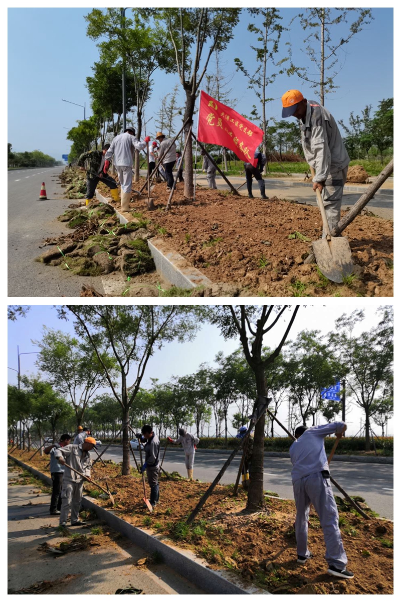 末伏天,熱浪席卷全身,太陽瘋了似的肆虐著萬物,即使是狂風暴雨的降臨也只能緩解一時的沉悶。8月18日上午,大浦支部黨員突擊隊臨危受命,奔赴匯晶北路綠化帶助力翔立分公司突擊鋪設(shè)草皮工程任務(wù),攜手共建美麗連云港。