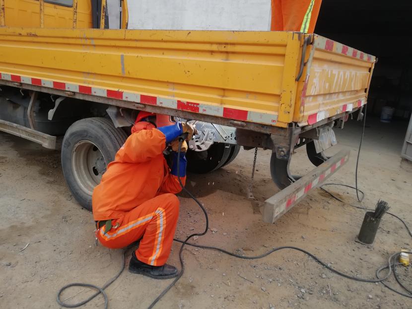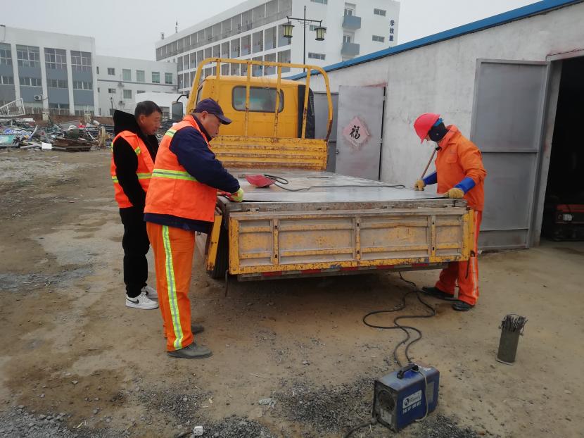 19日上午,經(jīng)過該公司設(shè)備維修班組再三斟酌,考慮如送修理廠維修,不但產(chǎn)生一筆不小的維修費(fèi)用,而且等待維修過程時(shí)間較長(zhǎng),影響工作進(jìn)度,為能給公司節(jié)省開支和不影響工作進(jìn)度,維修人員量好車廂底板尺寸后,將鐵板切割出需要的尺寸,一塊塊拼湊起來,加固在車廂底板上,通過半天的時(shí)間,順利為工具車底板披上一層合身、漂亮又特別的“盔甲”,有效延續(xù)了它的使用壽命。