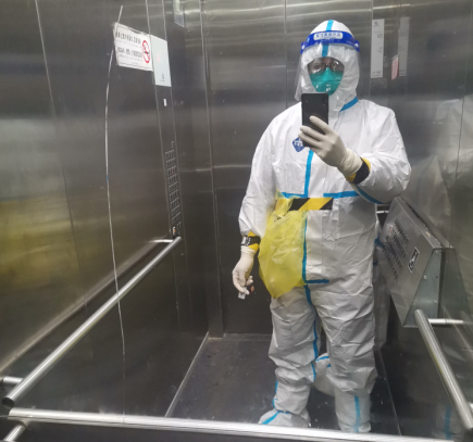 ? ? 14日? 雷聲驟響,大雨突降,集合時間待定,安心的吃了點早飯,依舊不敢吃多。9點開始,第九輪。我出狀況了,剛采一會口罩松了,眼鏡、面屏上全是霧氣,什么也看不見,沒法操作。為了不影響進度我被換下,原定入戶采集的志愿者頂上。防護服脫了就浪費了,我就等入戶醫(yī)生到達,去上門采集。掃樓和定點完全不一樣,悶、熱,大白服都濕透了。13.40結束,全身“噴殺”消毒,脫裝備,再噴消。飯后沒安排我工作,做了核酸后在小區(qū)里坐了幾個小時,心里始終不能平靜,害怕,不安占據了我的內心,即使做了防護措施但是還是有很大風險,我也有家人,所以我害怕,真的害怕!“沒事的”“沒事”最后還是妻子開解了我。