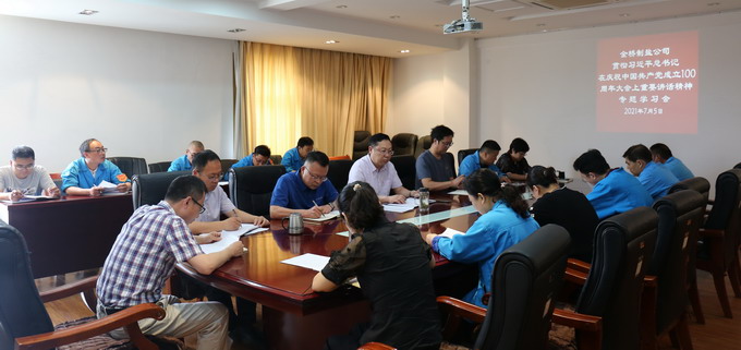7月5日上午,我公司召開黨委理論中心組(擴(kuò)大)學(xué)習(xí)會,專題學(xué)習(xí)習(xí)近平總書記在慶祝中國共產(chǎn)黨成立100周年大會上的重要講話精神。公司黨委書記、董事長、總經(jīng)理朱桂玉主持學(xué)習(xí)會。公司領(lǐng)導(dǎo)班子成員及其他黨委理論學(xué)習(xí)中心組成員,各車間單位黨政負(fù)責(zé)人,機(jī)關(guān)各部室負(fù)責(zé)人參加學(xué)習(xí)會。