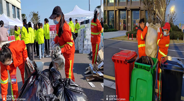 10月22日凌晨3時(shí),保潔公司40余名保潔先鋒兵鋒六路安全序時(shí)趕赴賽事保障區(qū)域。道路現(xiàn)場,保潔衛(wèi)士無懼深秋徐圩海風(fēng)吹透身體,兩人一組,揮動(dòng)手中掃把,徒手清掃各個(gè)活動(dòng)區(qū)域積土1000多米長,撿拾海風(fēng)吹落各種垃圾100余包。比賽現(xiàn)場,保潔人員無視秋日暖陽照曬,及時(shí)有效清理運(yùn)動(dòng)員丟棄飲料瓶300余包,清理打包各種餐盒2000多個(gè),轉(zhuǎn)運(yùn)各種垃圾200多車。大家齊心合力的工作精神與賽事活動(dòng)融入一體。